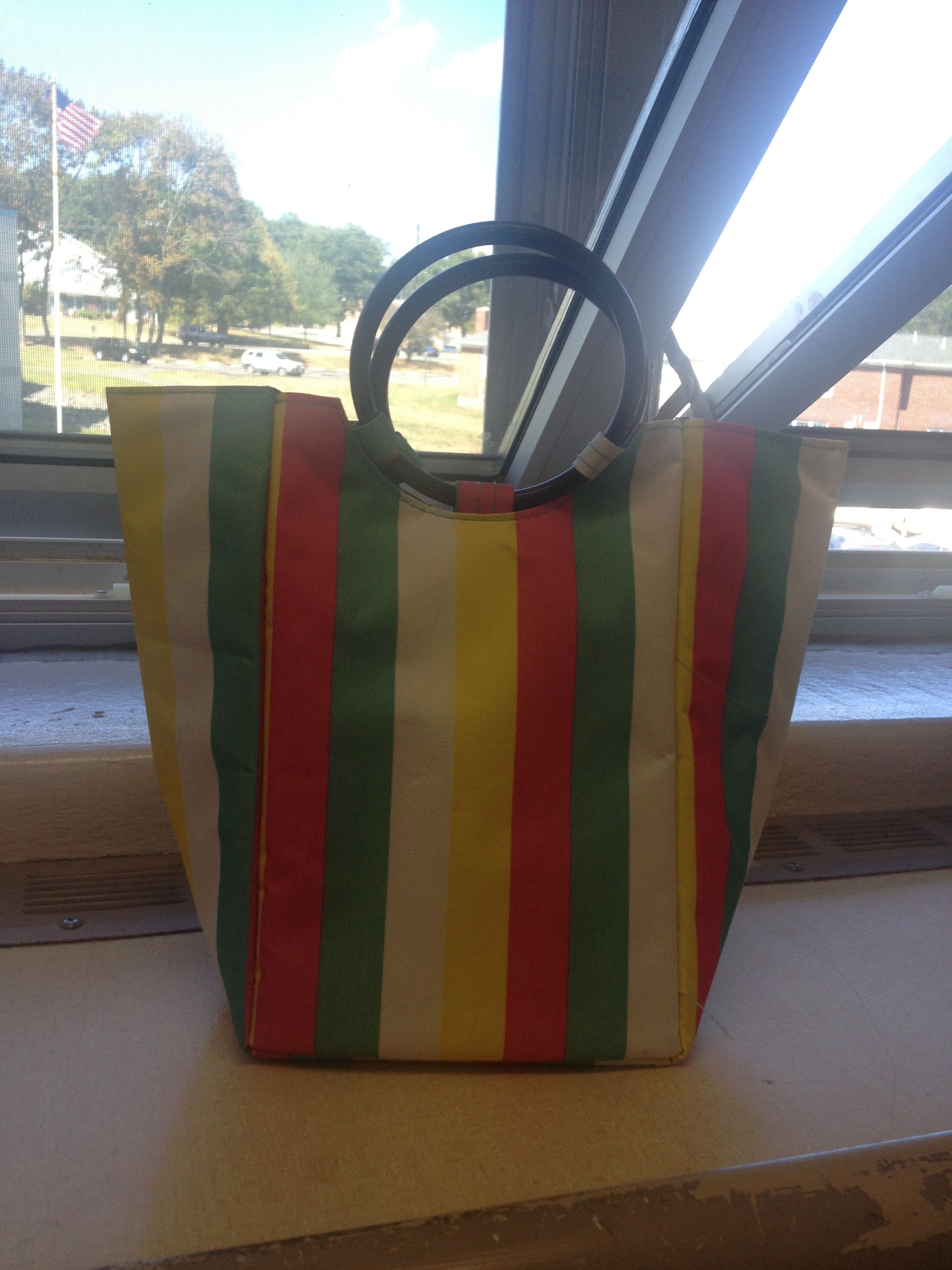 -I am loving my new striped lunchbox. It was only 3 dollars from the Christmas tree shop. It’s amazing because it expands, has organizing pockets, and it’s insulated!