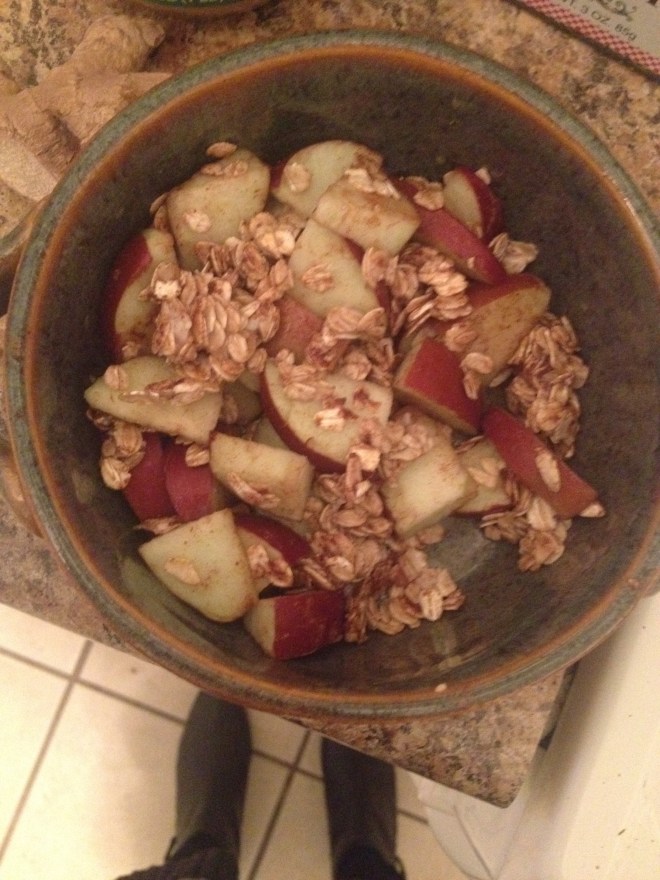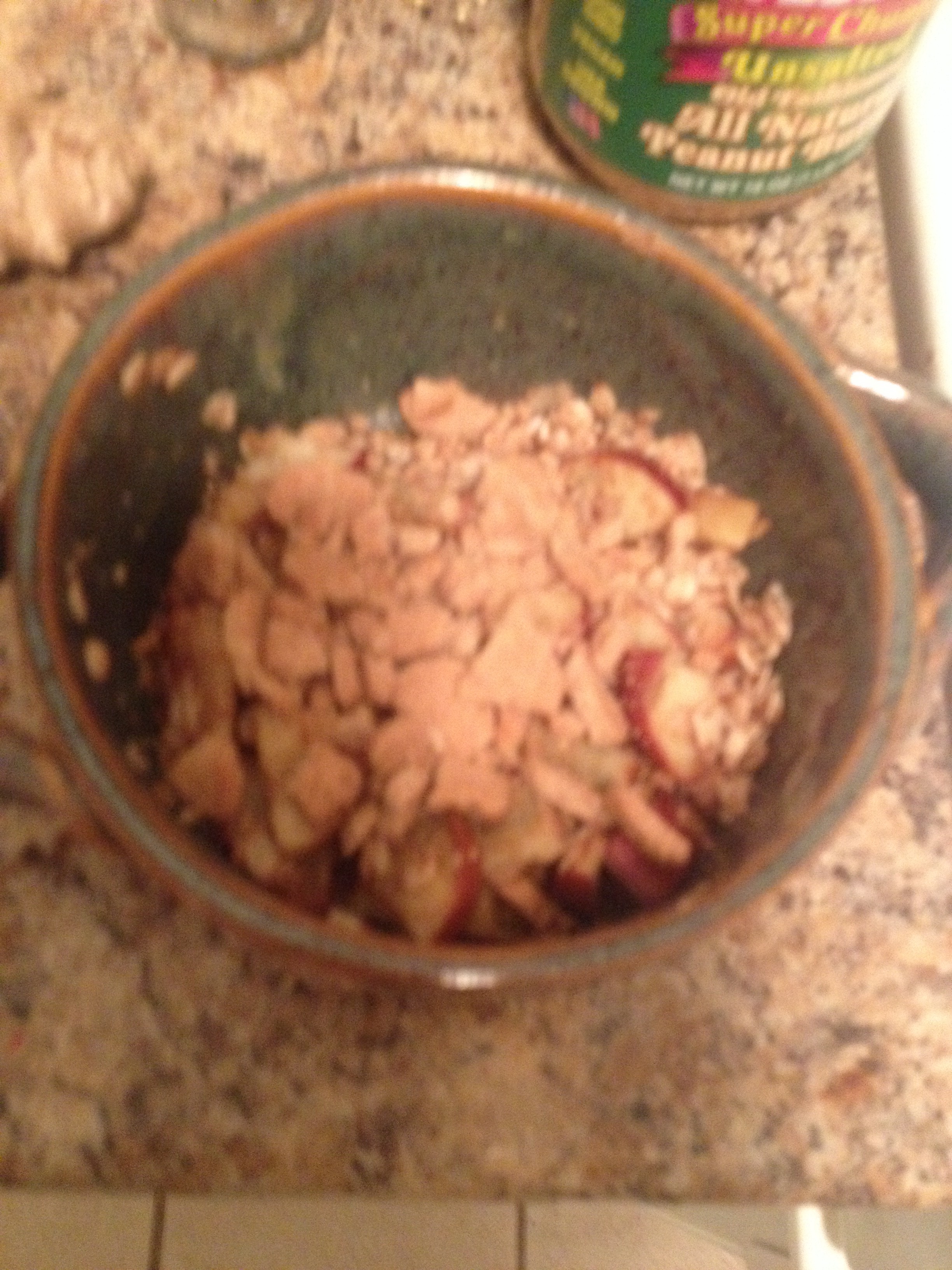 Apple Crisp is one of my favorite Fall treats, but it can be very labor intensive. Today I put together a quick, one- serving crisp that you can have for breakfast (like me) or save for a snack later in the day.